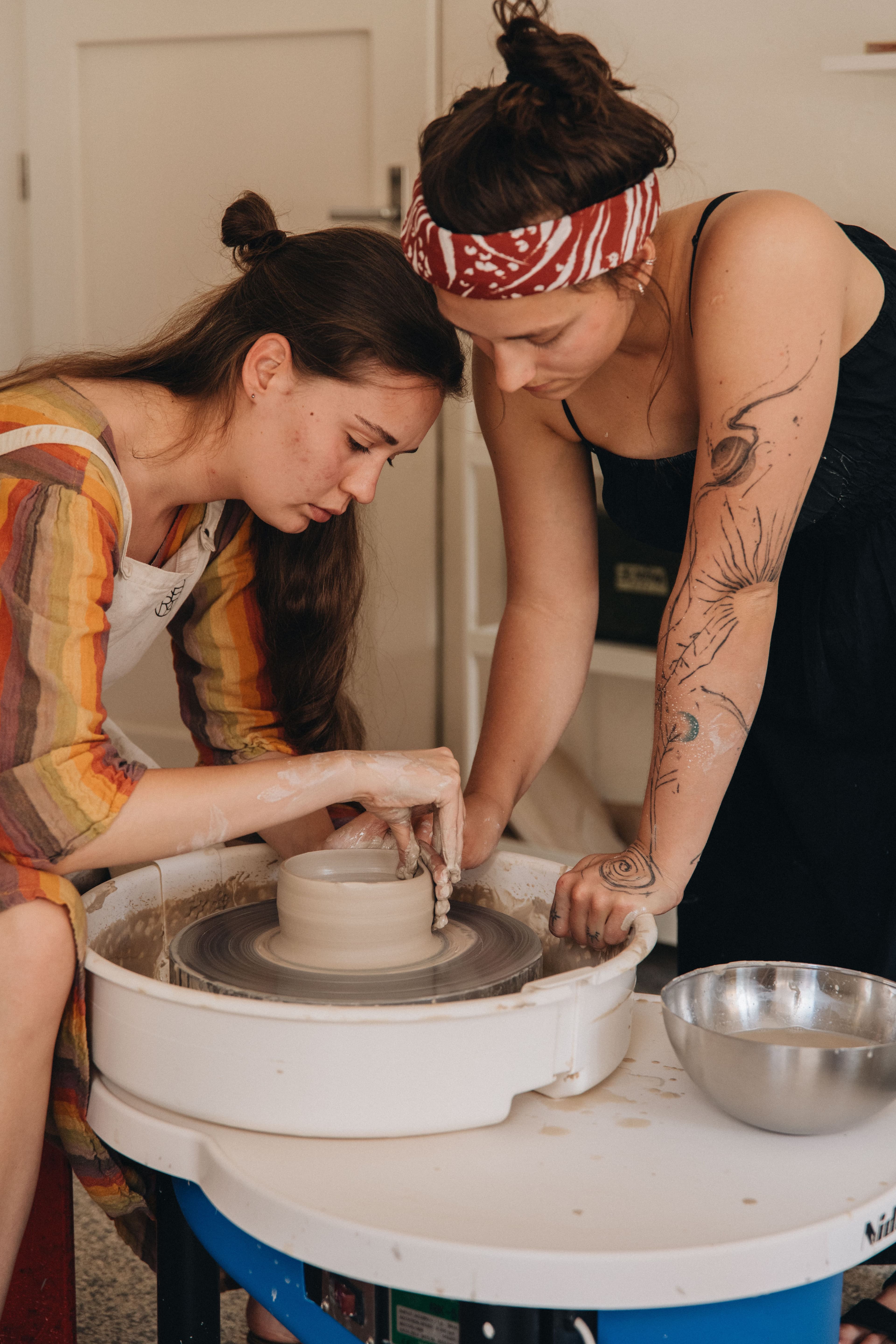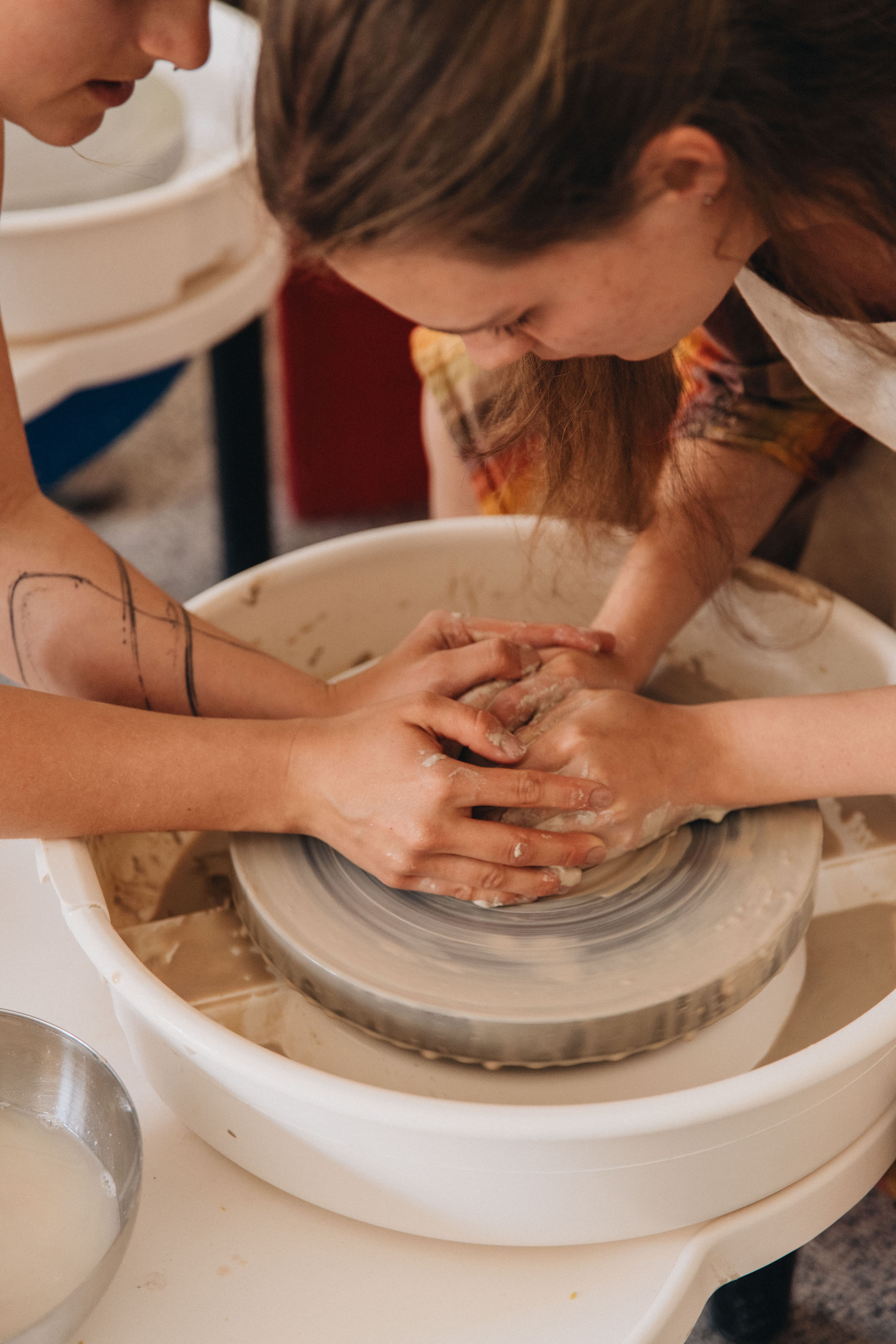 You will be sitting behind the pottery wheel the whole time. We will introduce you to the preparation of clay before throwing, throwing itself and centering techniques and turning the product, you will try turning our finished semi-finished products. The products from the workshop will be left to dry in the studio for wrapping or glazing. You can come and glaze the products from the workshop in the open studio, at the Glaze and wine workshop if you have no experience with glazing, or during consultation hours, when a lecturer is also available in the studio. The price of the workshop includes clay of your choice and firing. All the necessary tools and aids are at your disposal. Snacks, coffee, tea or prosecco are available at the workshop, depending on what you fancy. We work all the time in a calm and relaxing environment - we light candles, listen to calm music. A cheerful mood and laughter is also very welcome! If you remember, take photos and videos during the workshop to compare the rough and final product and also to share on social networks! We would appreciate your rating and feedback on Google or Instagram. We look forward to seeing you.